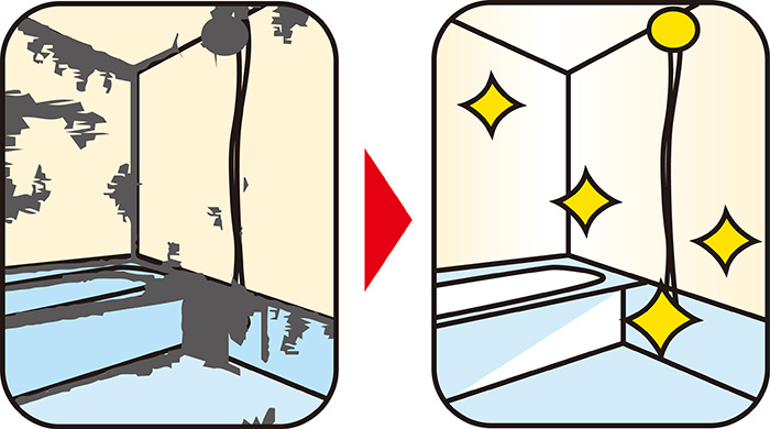 こんな施工法も! ❶リフォーム専用シート ピタッとリフォーム ❷パネル施工 ユニットバスにしたいけど予算がないの…というお客様へ 上からフィルムを貼るだけ!大がかりな施工は不要、予算もらくらく! 在来工法の浴室を、ユニットバス風にしていきます。 複雑な浴室もOK!工事中の音も、ほとんど出ません。 170,000円(税込)〜 カビだらけの浴室が生まれ変わる! 詳しくはお電話でお問い合わせ下さい!